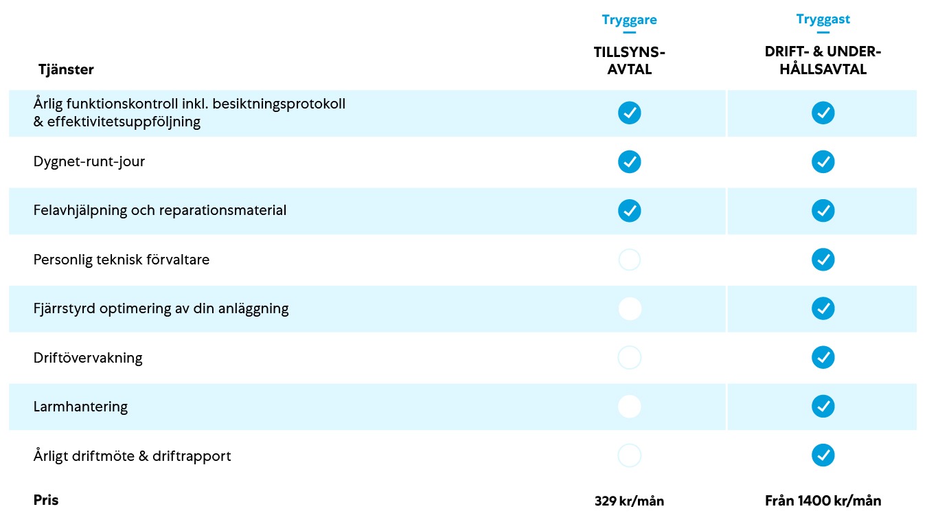 Teckna ett serviceavtal och känn dig ännu tryggare - eller till och med tryggast! Eftersom behovet för optimering och övervakning kan variera erbjuder vi olika servicenivåer på våra avtal.